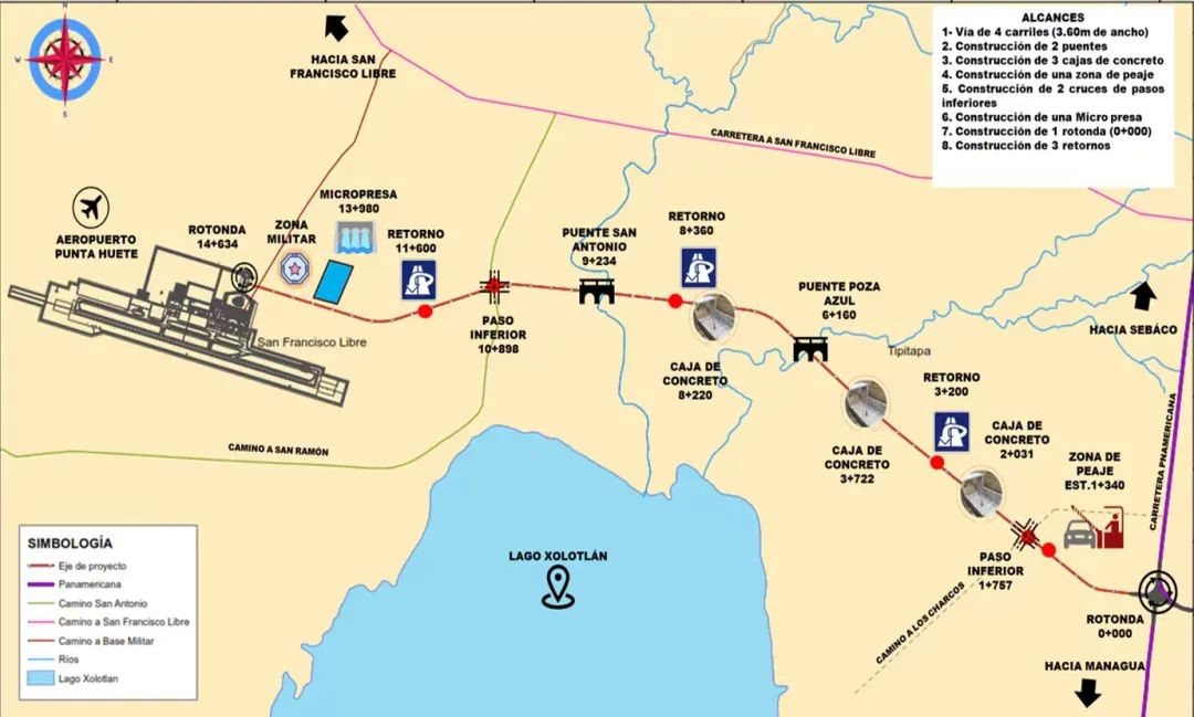 该项目涵盖设计、采购及建设一条双向四车道高速公路,专门服务于蓬塔韦特国际机场,建成后将成为尼加拉瓜首条收费公路。该道路将作为连接首都马那瓜与新建国际机场的重要枢纽,显著提升机场通达性与区域交通效率,缩短通行时间,改善道路条件,优化旅客出行体验。
